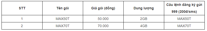 Ngoài ra bạn còn có thể đăng ký hai gói MAX add-on MAX50T và MAX70T sau: