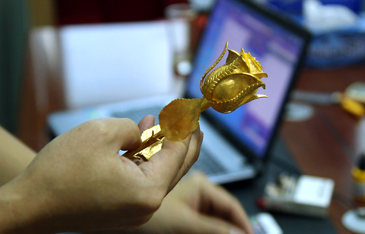 Trọng lượng của bông hồng là 5,5 lượng vàng 24K