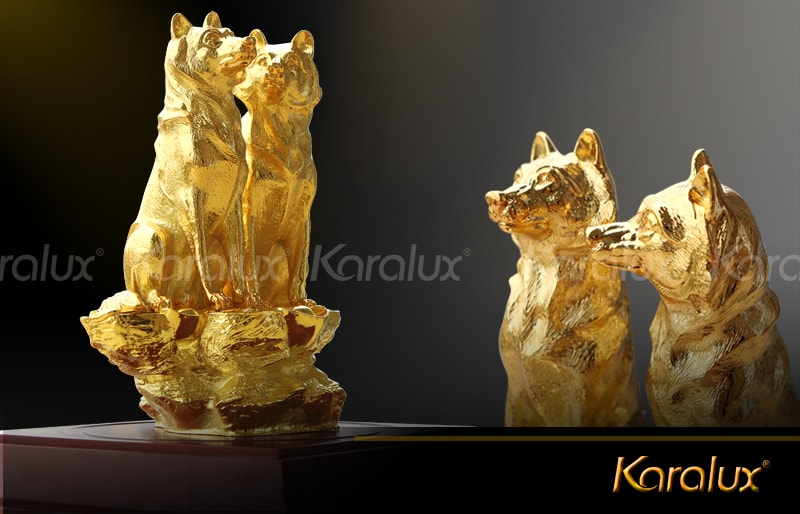 Ngoài sản phẩm tượng chó phong thủy mạ vàng, Karalux còn giới thiệu bộ quà tặng linh vật 12 con giáp mạ vàng. Đây là bộ quà tặng độc đáo, sang trọng tương ứng với các năm tuổi để để tặng sếp, đối tác, người thân trong dịp năm mới, hay tân gia.