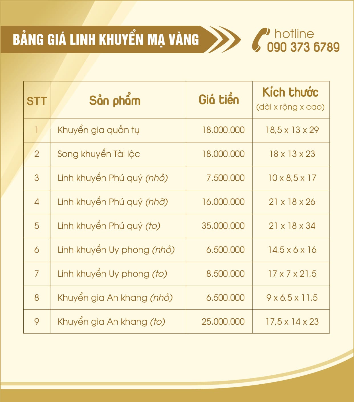 Giá bán tượng Linh Khuyển mạ vàng kèm kích thước chi tiết (kích thước chưa bao gồm đế):