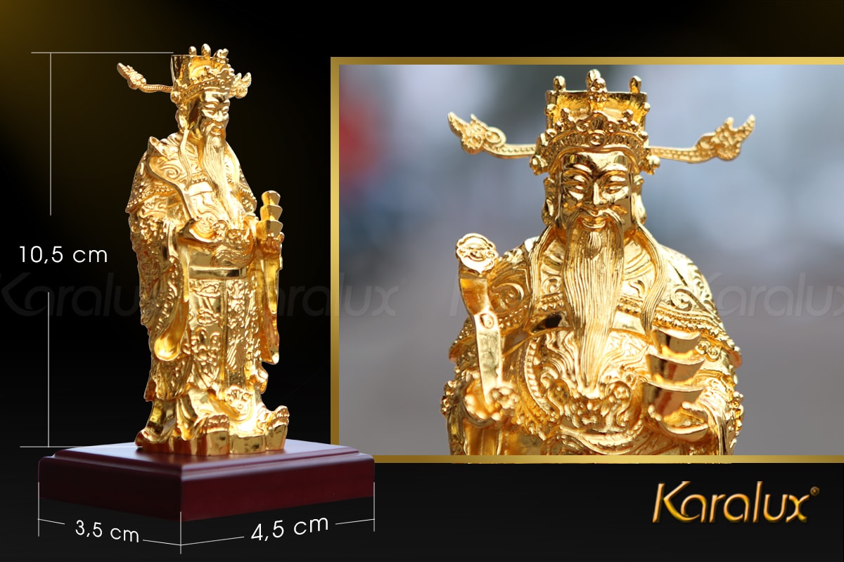 Tượng Thần Tài được đúc bằng kim loại đồng nguyên khối với các chi tiết vô cùng tinh xảo, sau đó đươc phủ vàng 24k sang trọng.