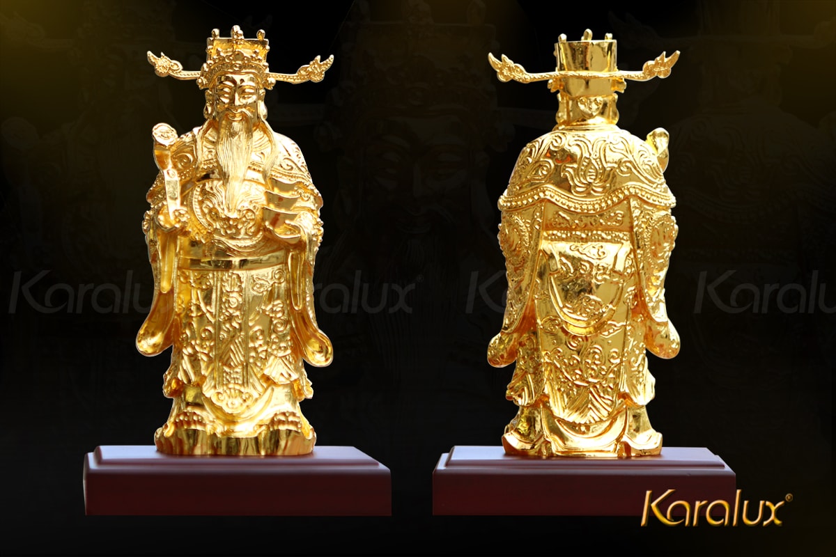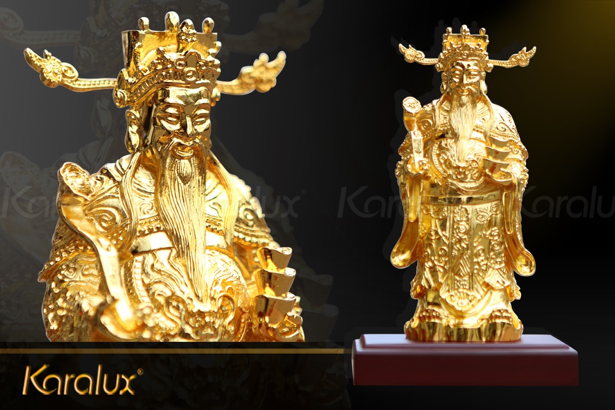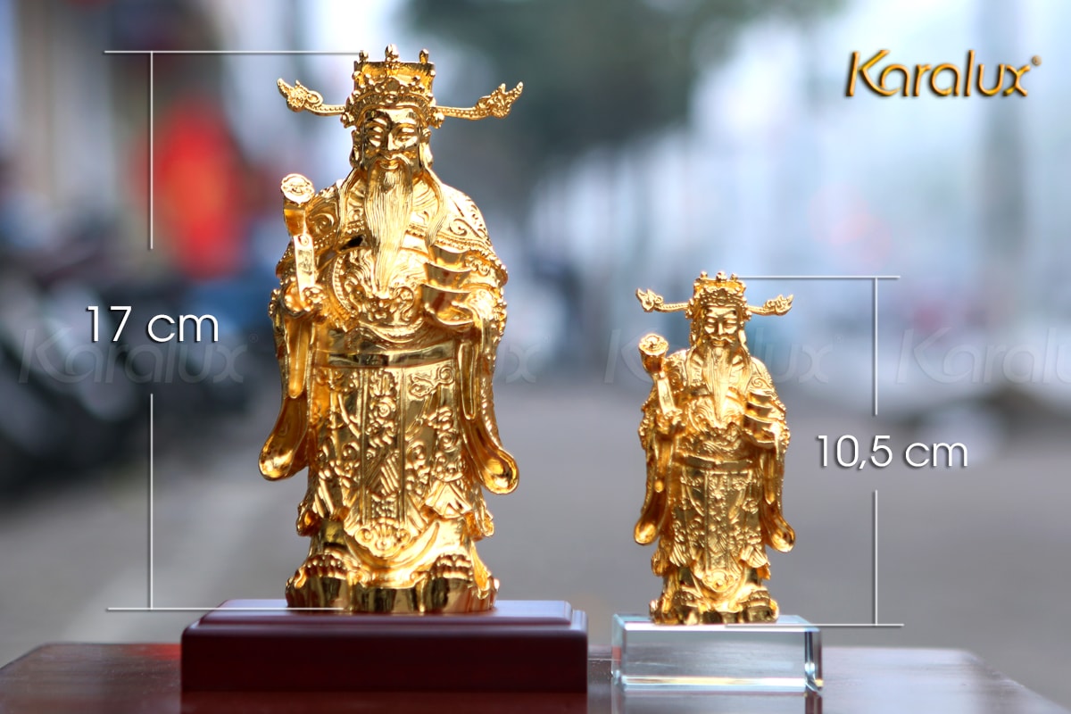 Tượng Thần Tài mạ vàng (loại lớn) được Karalux chế tác với chiều cao 17cm, đúc tinh xảo đến từng đường nét, đây là một số ít tượng được chế tác tỉ mỉ nhất.